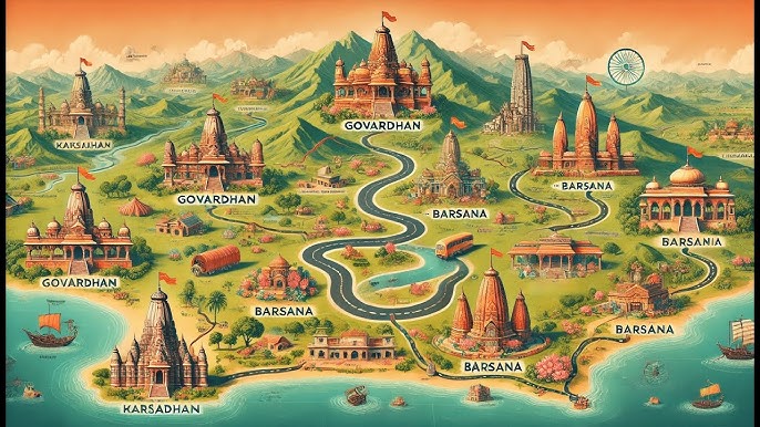 Here is a detailed roadmap for the Govardhan Yatra, outlining the key stages of the journey from various points and including essential landmarks and travel tips: